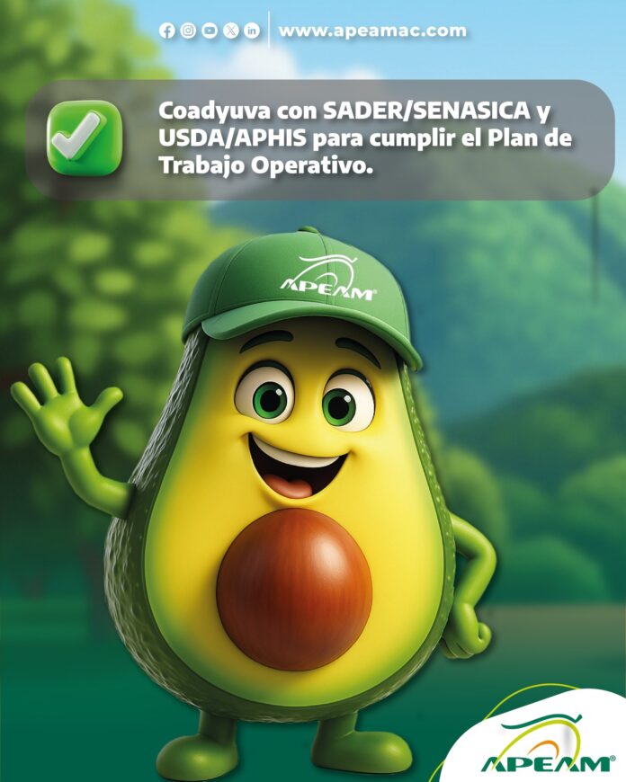 En coordinación con SADER/SENASICA y USDA/APHIS, APEAM coadyuva en el cumplimiento del Plan de Trabajo Operativo Binacional, asegurando que el aguacate mexicano cumpla con los más altos estándares fitosanitarios, de inocuidad y certificación para exportar en condiciones óptimas.