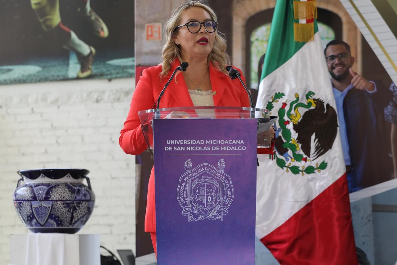 La rectora de la UMSNH, Yarabí Ávila González reconoció el apoyo que el gobernador ha brindado a la Máxima Casa de Estudios de la entidad en materia de infraestructura con la rehabilitación y construcción de nuevos campus, con el propósito de ofertar una mejor calidad educativa para las juventudes michoacanas.