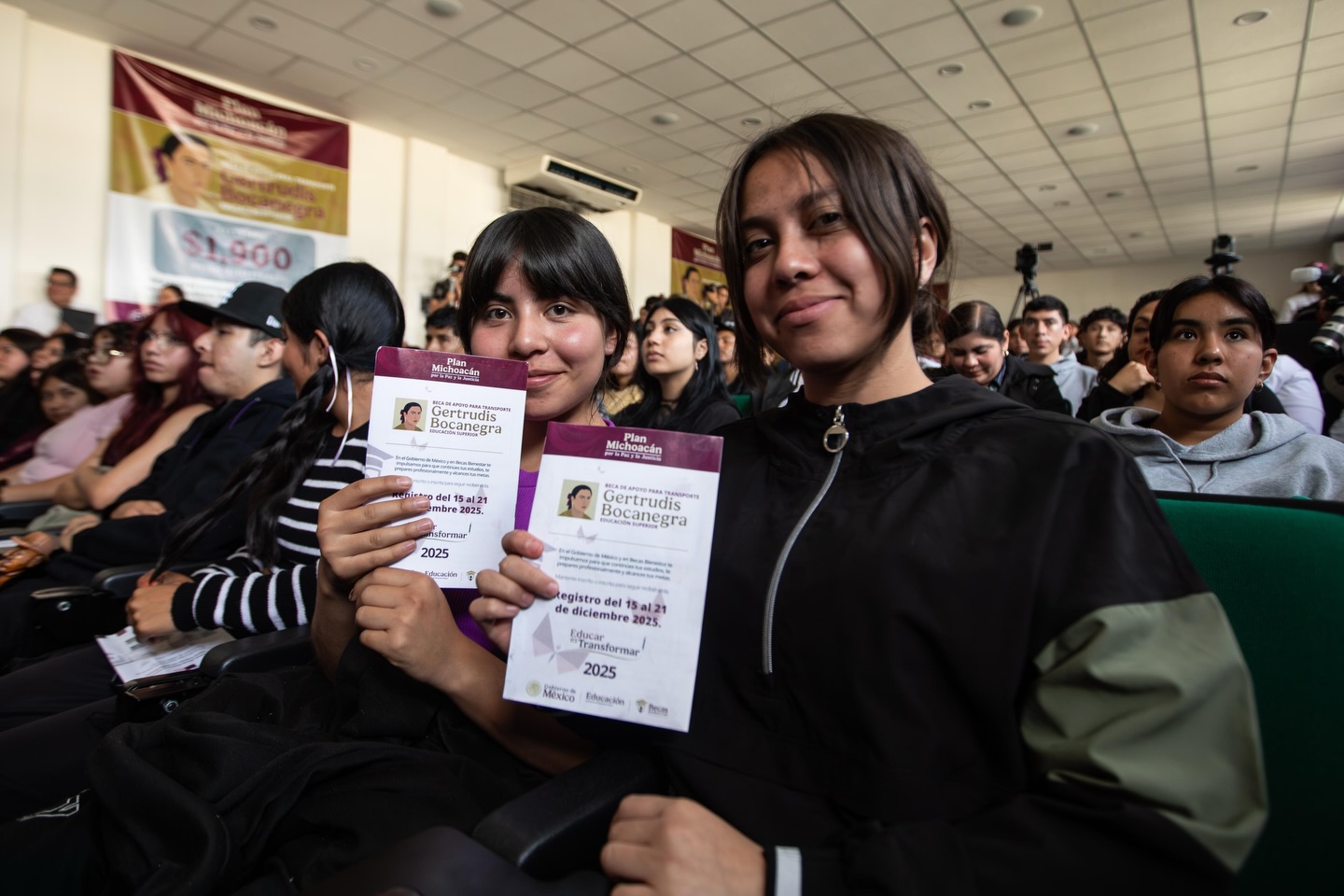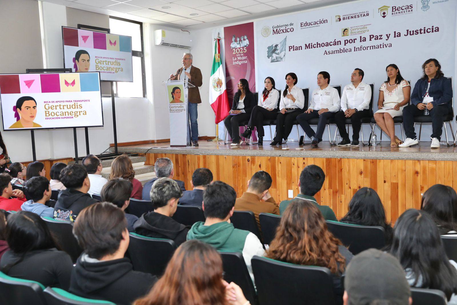 En asamblea informativa realizada en la Universidad Tecnológica de Morelia (UTM), el mandatario destacó que se trata de un apoyo universal, por lo que ningún estudiante se quedará sin recibir los mil 900 pesos que, de manera bimestral, se depositarán a partir de febrero de 2026 para cubrir los gastos de transporte público.