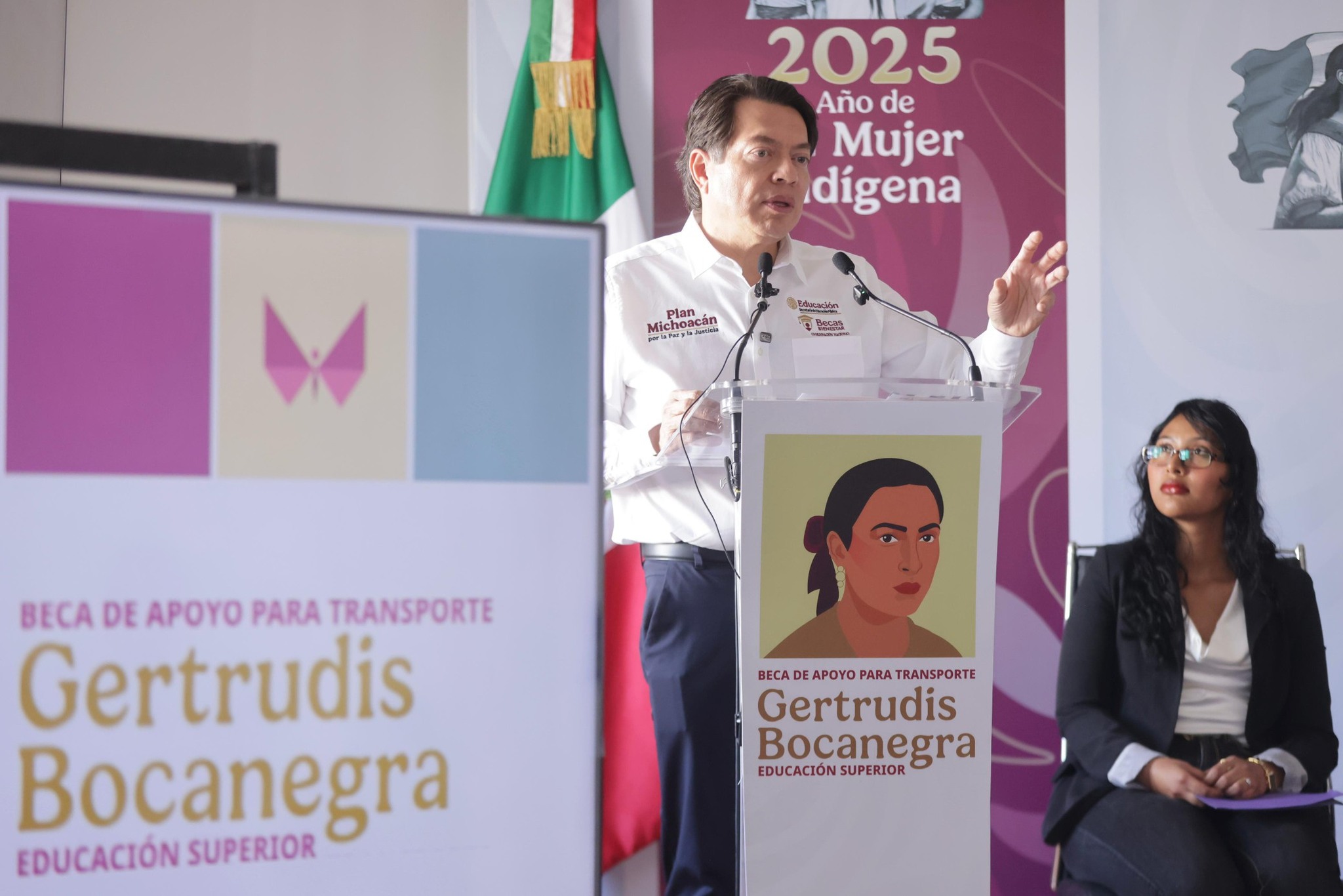 El registro para la Beca Gertrudis Bocanegra, única en el país impulsada con el Plan Michoacán por la Paz y la Justicia, inicia el 15 de diciembre para beneficiar a 98 mil 569 estudiantes universitarios de 121 escuelas públicas de Michoacán, informaron el gobernador Alfredo Ramírez Bedolla y el secretario de Educación Pública, Mario Delgado Carrillo.