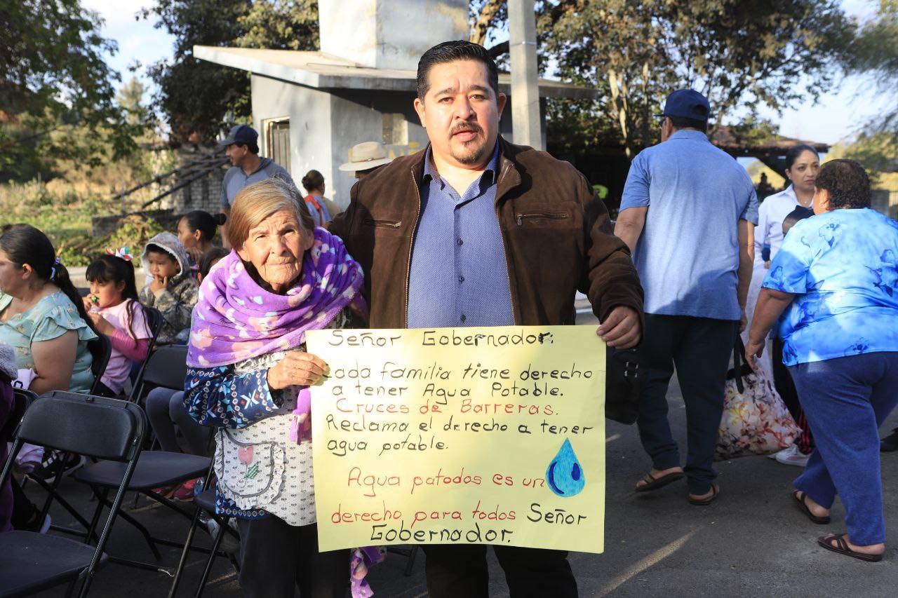 Durante el acto protocolario, pobladores de Cruces de Barreras mostraron pancartas exigiendo una solución a la problemática del vital líquido que, según se señaló, persiste desde hace décadas. Este clamor público fue secundado por el presidente municipal, Mario Herrera, y el diputado local, Octavio Ocampo, quienes demandaron acción inmediata al Estado y a la Comisión Nacional del Agua (Conagua).