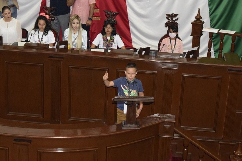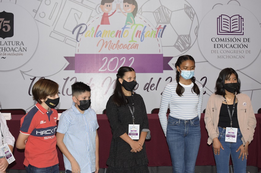 Con la integración de la Mesa Directiva, esta mañana quedó instalado el Parlamento Infantil Michoacán 2022, en el que participan niñas y niños de los municipios de Morelia, Tarímbaro, Zinapécuaro, Huiramba, Indaparapeo, Contepec, Ciudad Hidalgo y Maravatío, además de Pátzcuaro, Aquila, Chilchota, Zamora, Angangueo, Apatzingán y Uruapan, realizando sesiones programadas para los días 12 y 13 del mes en curso, donde las y los niños presentarán sus propuestas legislativas en temas como el cuidado del medio ambiente, los derechos de niñas y niños, la familia y la educación, entre otros.