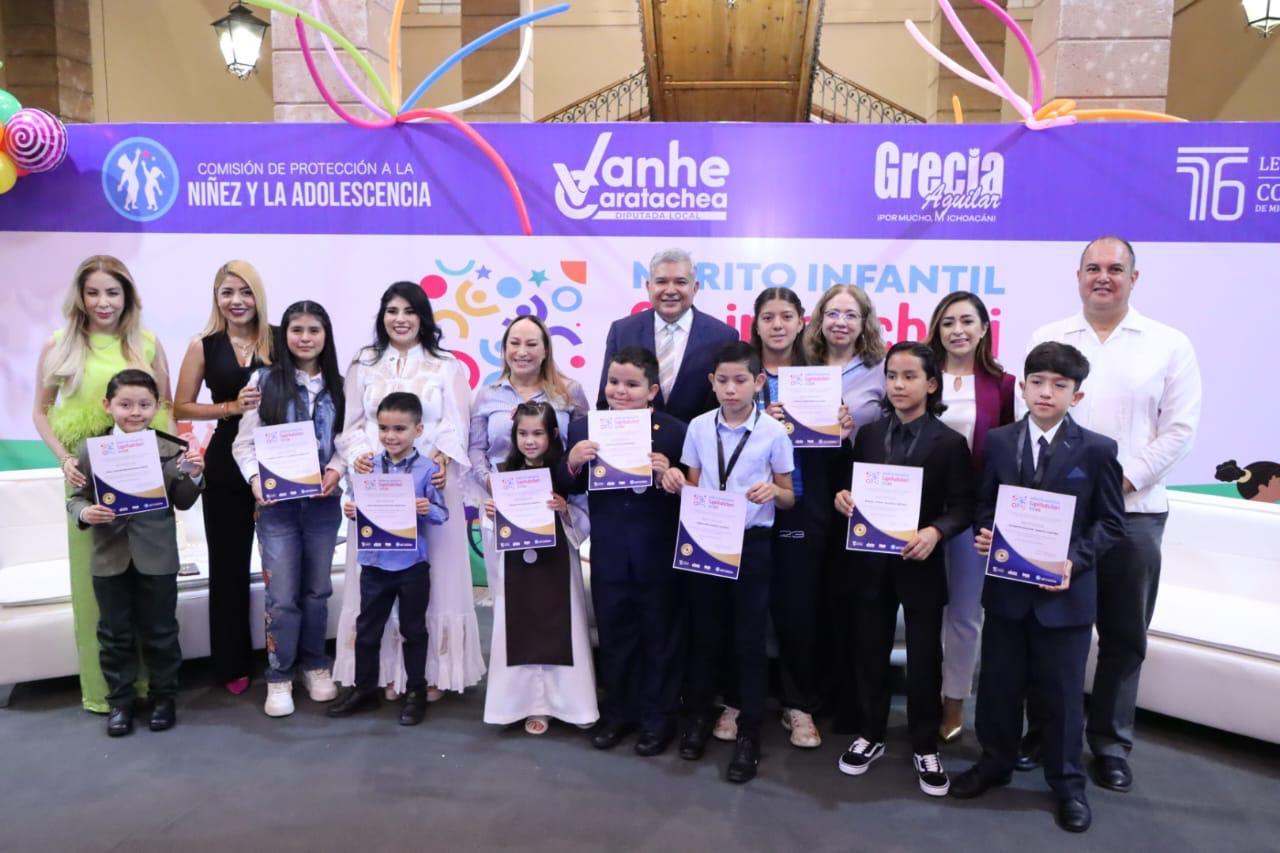 Las niñas y niños condecorados fueron: Axel Kadar E.B. y Patricio D.S., en la categoría de difusión de los derechos de las infancias; Nicole M.G. y Miguel Ángel V.M., en la deportiva; Regina R.R., en la categoría de cultura de la paz; Abraham L.C., en medio ambiente; Héctor Ikiani B.Q. y Shara Noelle C.M., en la categoría académica; y Guiseppe Manuel G.C., en cultura.