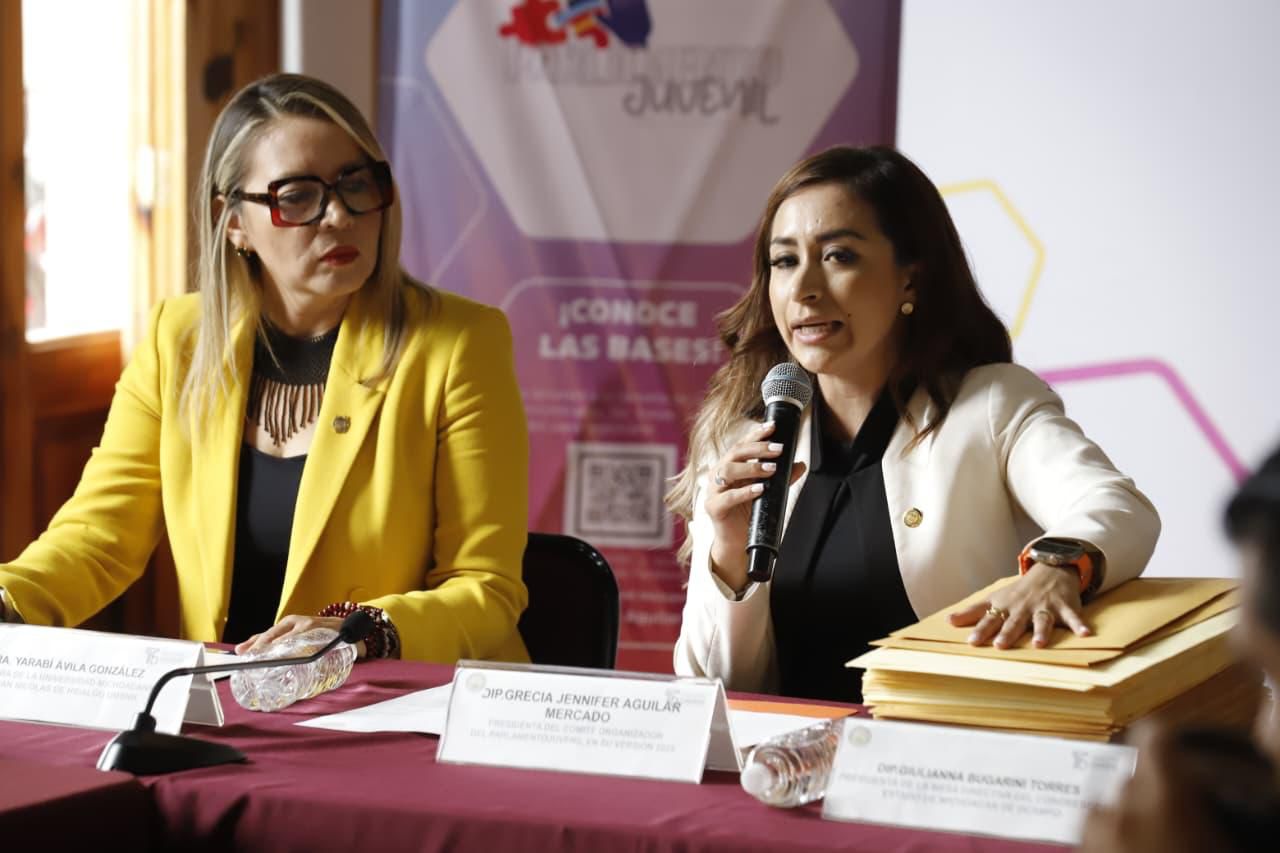 La diputada Grecia Jennifer Aguilar Mercado, presidenta del Comité Organizador del Parlamento Juvenil 2025, informó que se registraron 102 participantes, de los cuales 79 presentaron iniciativa de ley y 23 proyecto social.