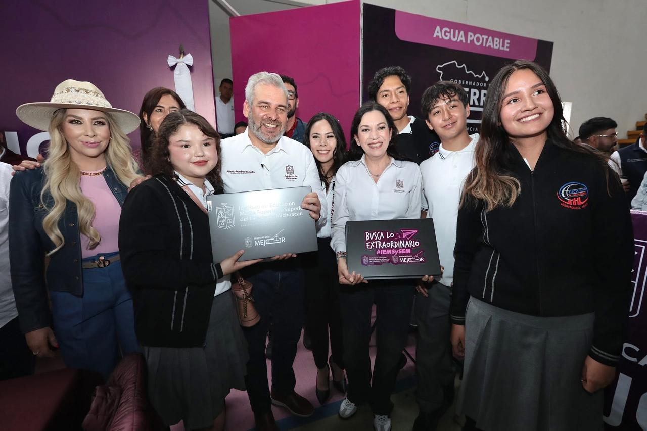 La entrega fue encabezada por el Gobernador del Estado, Alfredo Ramírez Bedolla, durante su visita al municipio como parte del programa “Gobierno en Territorio” y por Mariana Sosa, directora del Instituto de Educación Media Superior y Superior del Estado, en coordinación con el Gobierno Municipal.