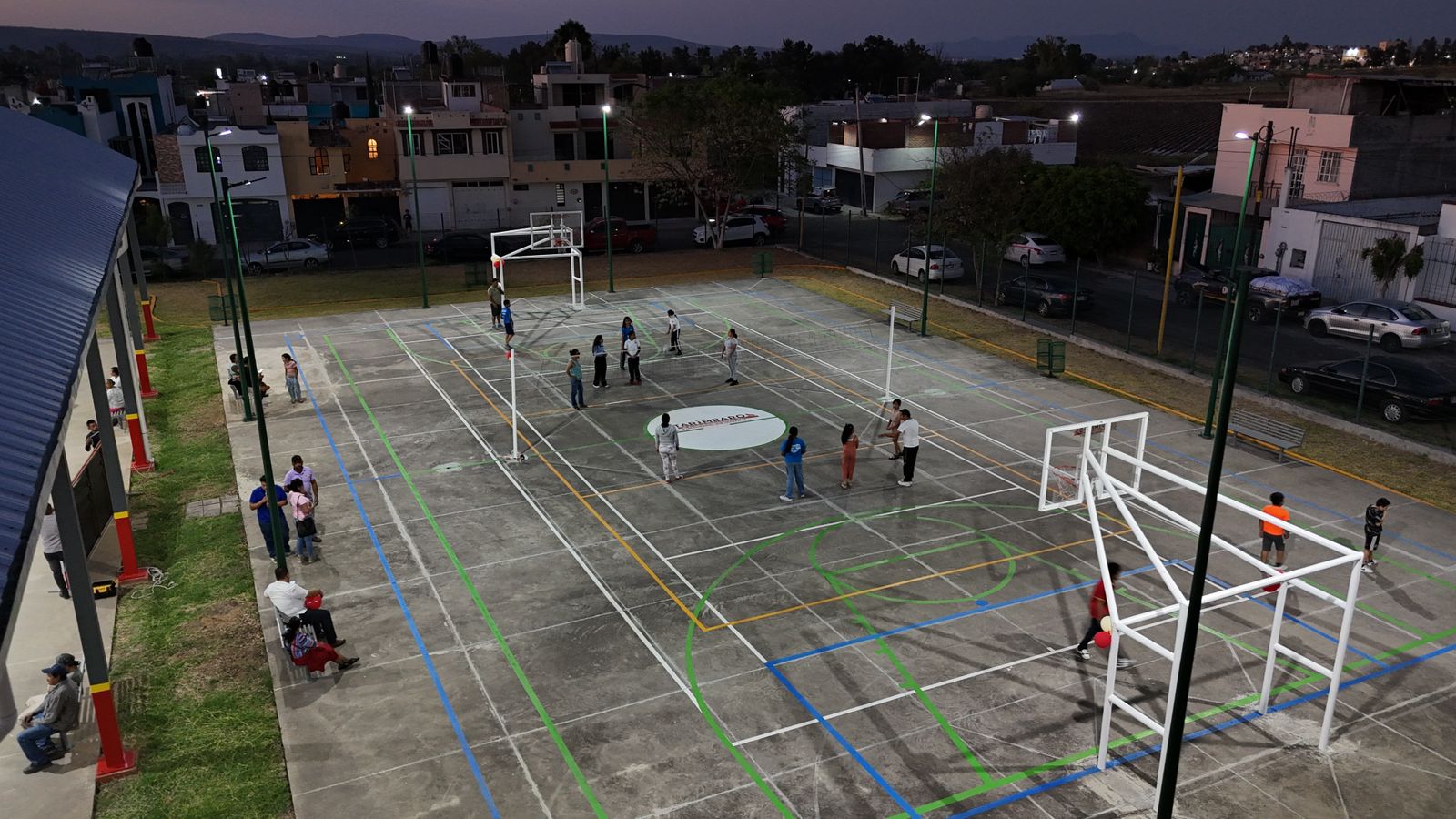 Con una inversión superior a 1 millón 300 mil pesos, se llevaron a cabo importantes trabajos de rehabilitación, entre los que destacan el mejoramiento integral de la cancha de baloncesto, colocación de mallas detrás de las porterías en la cancha de fútbol, rehabilitación de baños, adecuación del salón de usos múltiples, accesos y rampas funcionales, cancha de voleibol, mejora del área infantil, así como la instalación de iluminación LED en todos los espacios de la unidad deportiva.