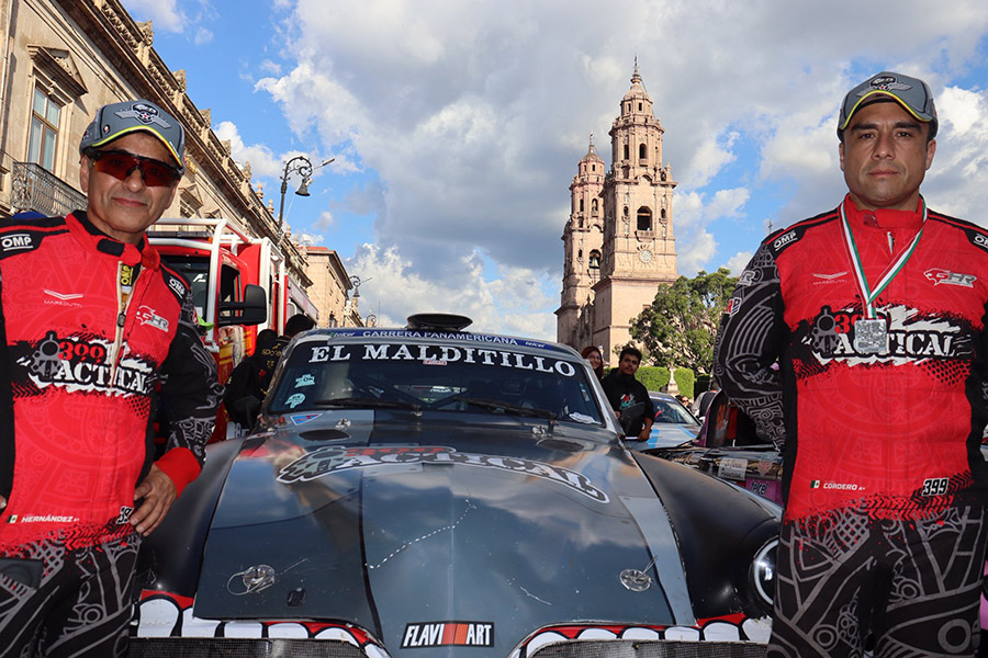 Los nuevos líderes de la Carrera Panamericana el piloto Ricardo Cordero y el navegante michoacano Marco Hernández, tripulantes de “El Malditillo”.