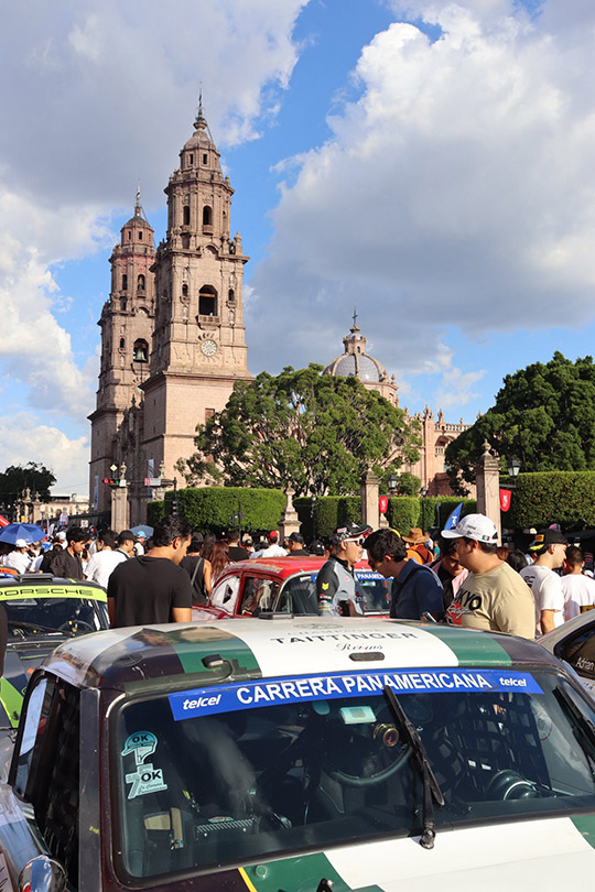 El Char García, debutante en la Carrera Panamericana, arribó en su Studebaker Champion con su navegante Lalo Solís, una belleza clásica que cautivó a los morelianos, igual que los Ford Falcon, Porsche 911, Ford Mustang, LT Special, Datsun e incluso el Austin Healey Sprite Bug Eye, de los mexicanos Guy Jean Savoir y Ricardo Bello.