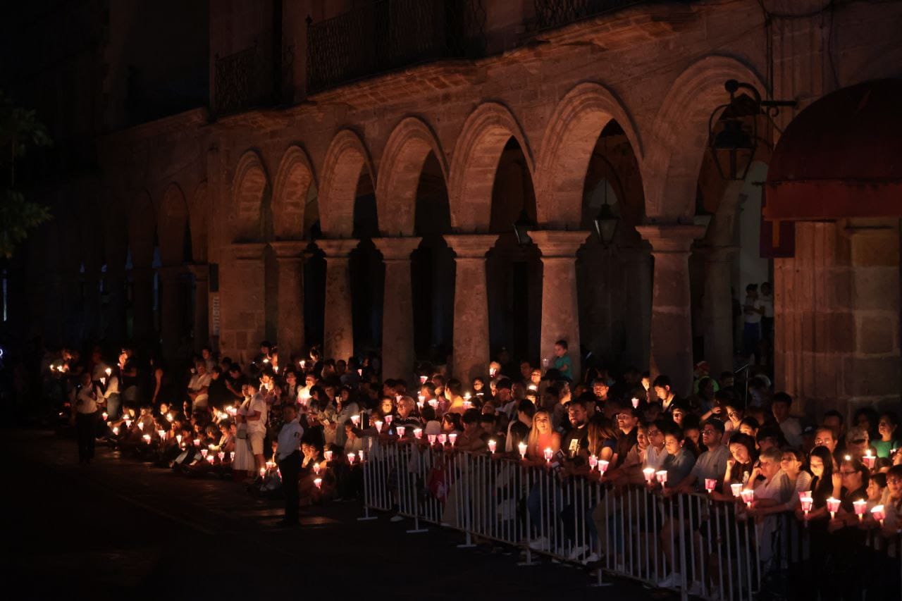 El silencio total y la tenue luz de las velas que entregó la Secretaria de Turismo de Morelia a los asistentes, así como las veladoras de los participantes, hizo que el Centro Histórico luciera espectacular.
