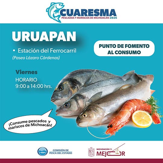 Con la expectativa de apoyar a productores y pescadores de Michoacán en la comercialización de 140 toneladas de pescado y mariscos de alta calidad a precios accesibles, la Comisión de Pesca del Estado de Michoacán (Compesca) puso en marcha el Programa “Cuaresma 2026”, mediante el cual se fomenta el consumo de productos locales y a la vez se fortalece la economía familiar, con el respaldo directo a 125 unidades de producción acuícola.