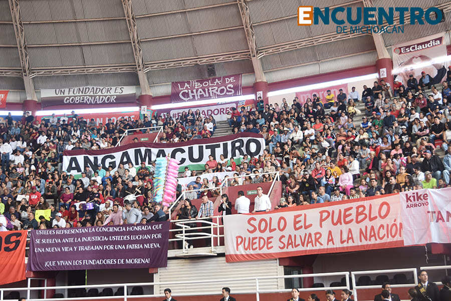 El gobernador Ramírez Bedolla, legisladores y alcaldes de la región arroparon a la presidenta de la mesa directiva del Congreso Local a su Primer Informe, en el Pabellón Don Vasco.