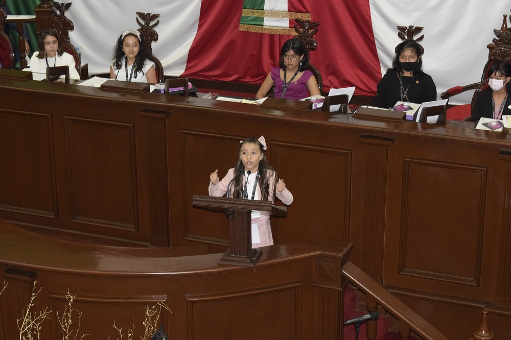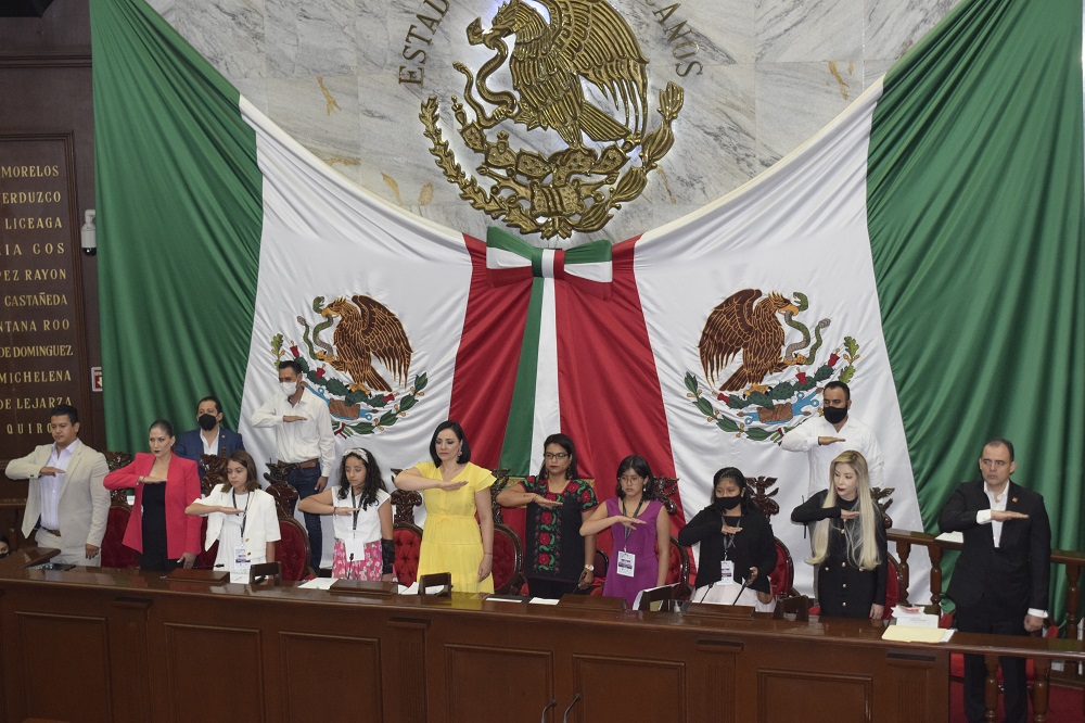 En sesión a la que asistieron representantes de los 3 poderes del estado así como la banda de guerra y escolta de la XXI Zona Militar, el Congreso del Estado instaló formalmente el Parlamento Infantil 2022, en el que participan 44 niños y niñas de diversos municipios michoacanos, quienes rindieron protesta estatutaria para enseguida llevar a cabo la primera sesión de trabajo, donde los niños diputados abordaron la máxima tribuna del estado para delinear algunos de los temas que se estarán debatiendo en este mini parlamento, uno de los más sentidos y dolorosos es el de los feminicidios.