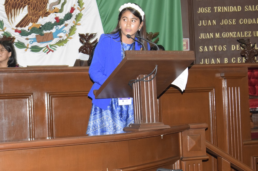 En tono enérgico, ante los diputados locales, con Belinda Hurtado a la cabeza como presidenta de la Comisión de Educación, organizadora del Parlamento Infantil, la apatzinguense Melisa Godoy reprochó a las autoridades los altos índices de inseguridad en Michoacán y el país y exigió justicia para las mujeres y niñas desaparecidas, violentadas y muertas en México. “Levanto la voz en nombre de esas niñas y mujeres que tuvieron miedo y ya no podrán hacerlo”, y lo hace en espera de que sus palabras retumben en los corazones de quienes pueden tomar decisiones y actuar para solucionar el problema.