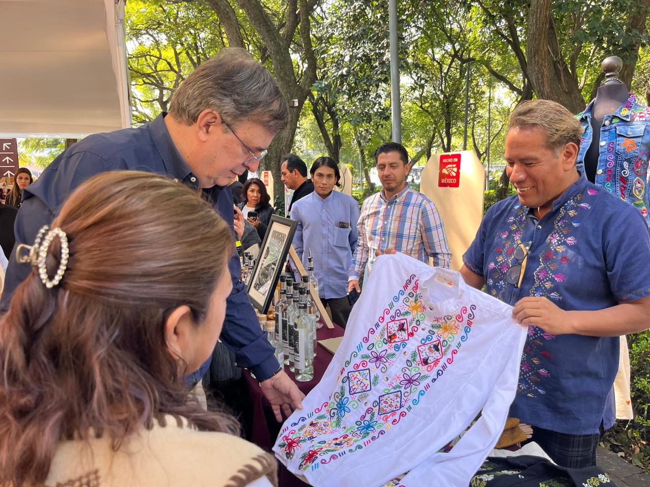El Secretario de Economía del Gobierno de México, Marcelo Ebrard, encabezó la Feria de Comercio por la Paz y la Justicia, un evento que reunió a más de 150 expositores provenientes de todas las regiones de Michoacán, con el propósito de reactivar la actividad económica y fortalecer los ingresos de artesanas, artesanos y productores que habían visto afectadas sus ventas.
