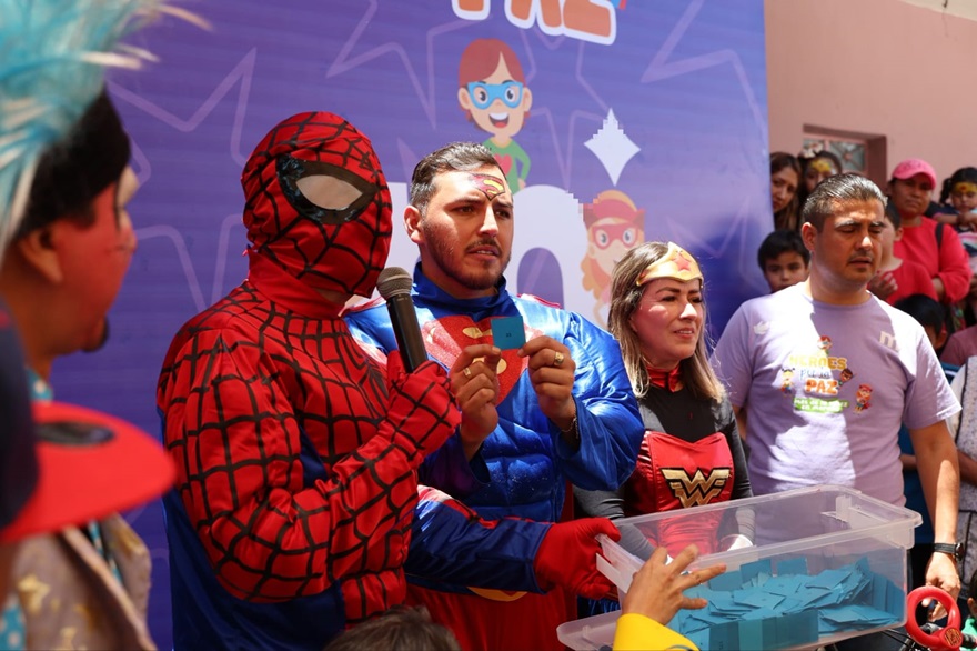 La Feria de la Niñez “Héroes por la paz” realizada por el Gobierno Municipal de Morelia y el DIF Morelia llegó a Santiago Undameo, donde las niñas y niños de la tenencia vivieron un día de alegría rodeados de juegos, regalos y sus superhéroes favoritos.