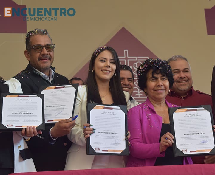 Celebramos que somos un municipio que se reconoce en la mirada de su gente, un municipio que se fortalece en sus raíces y que se construye día con día, expresó el alcalde Alexis Velázquez, quien firmó hermanamiento con varios municipios, entre ellos Queréndaro.
