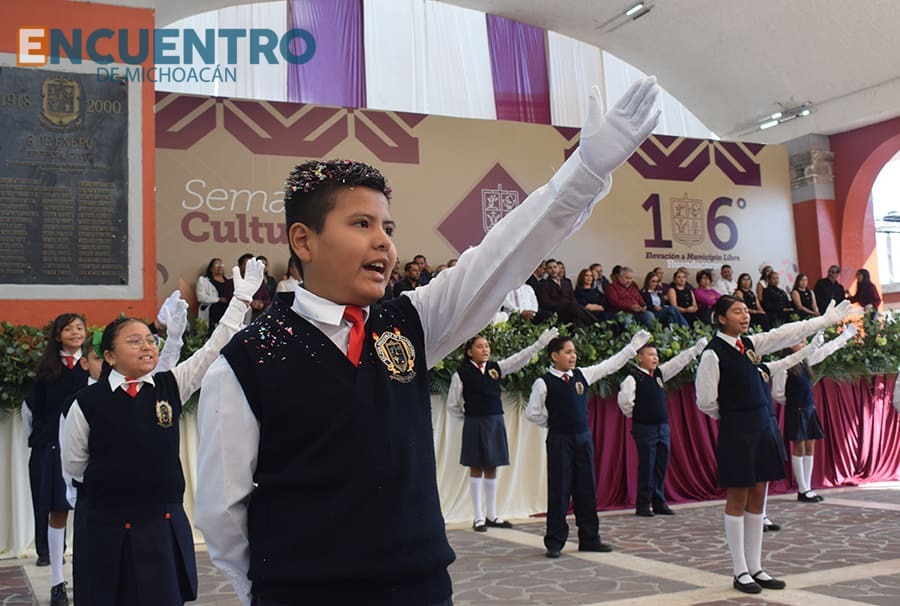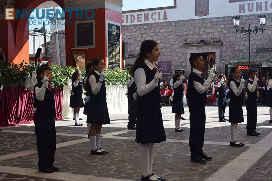Además, los niños de la Escuela Primaria “Defensores de Huandacareo” deleitaron al público y autoridades con la poesía “Despierta”.
