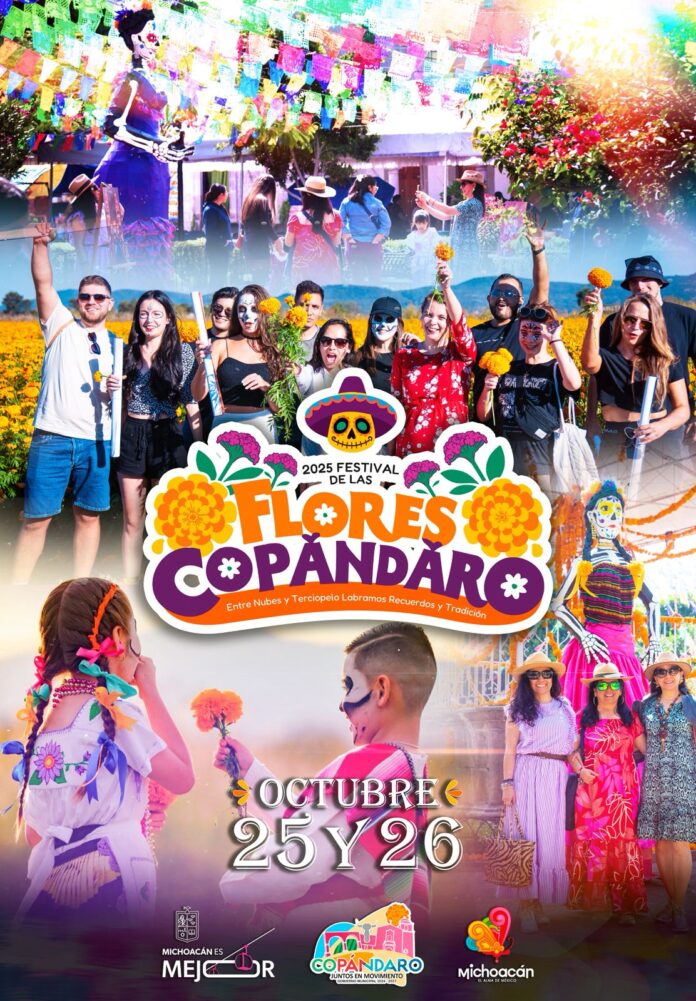El Festival de las Flores de Copándaro 2025 está listo para iniciar sus actividades el próximo 25 y 26 de octubre, informó la Secretaría de Turismo de Michoacán (Sectur), dependencia dirigida por Roberto Monroy García.