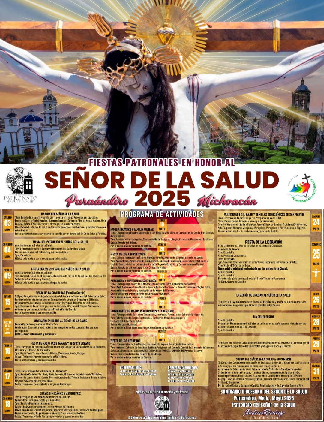Tan solo este tres de mayo, para la bajada y el recorrido del Señor de la Salud por las calles Francisco Sierra, Portal Morelos, Guerrero, Morelos, Zaragoza, Plan de Ayala, Madero, Riva Palacios, Juárez y Emiliano Carranza, se contempla la presencia de más de 25 mil personas.