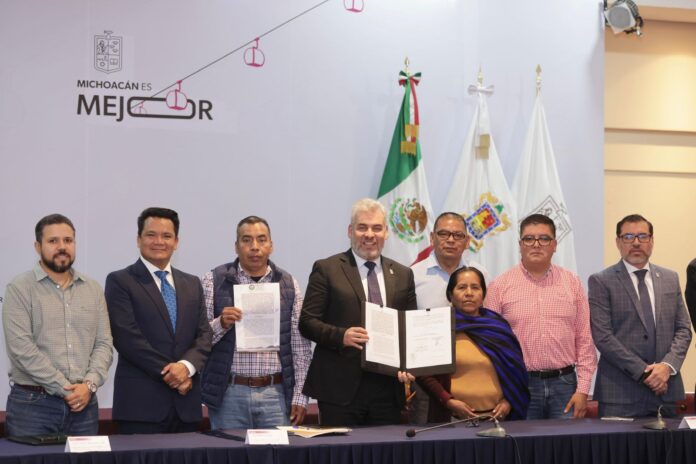 Firma Bedolla y Concejo Mayor de Cherán convenio para reforzar ronda comunitaria