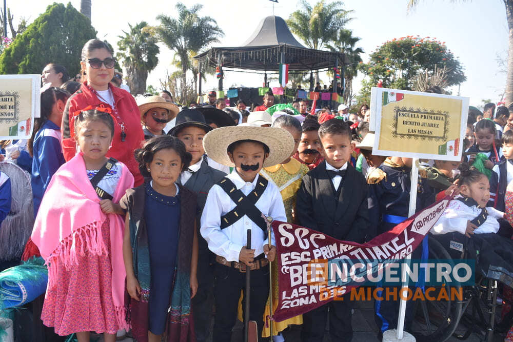 El desfile, columna vertebral del evento, fue encabezado por el alcalde Gabriel Molinero Villaseñor, su esposa e integrantes del Cabildo, junto a los representantes del Comisariado Ejidal: Alejandro Calderón Chávez, Guadalupe Garnica Rojas y Manuel Calderón López, además del encargado del orden, Armando Ramírez.