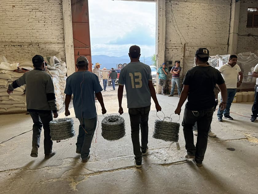 Al refrendar su impulso al campo, el presidente municipal de Charo, Gabriel Molinero, realizó la entrega de 200 rollos de alambre de púas a bajo costo para apoyar a ganaderos y agricultores del municipio, fortaleciendo sus unidades de producción y ayudando a proteger corrales y parcelas.