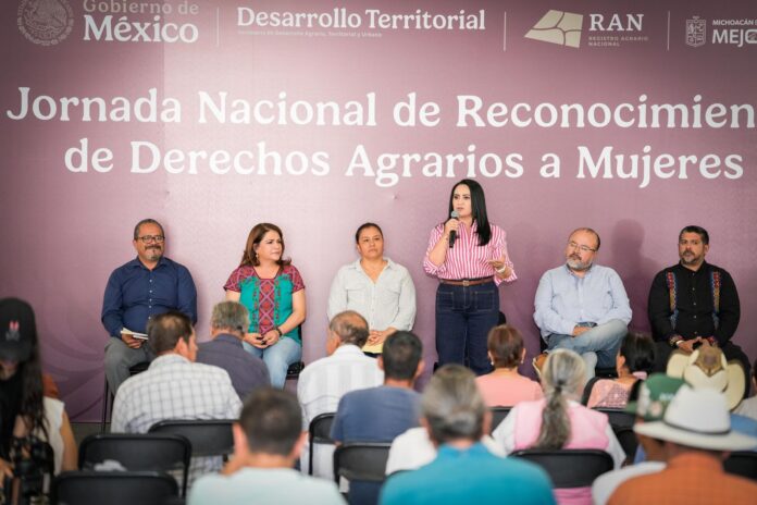 Por su parte, Gladyz Butanda celebró y destacó que por instrucción federal, y bajo la visión del gobernador Alfredo Ramírez Bedolla, quien ha velado por los intereses de las mujeres michoacanas, se trabaja para garantizar que las mujeres sean reconocidas como protagonistas en la vida agraria de Michoacán.