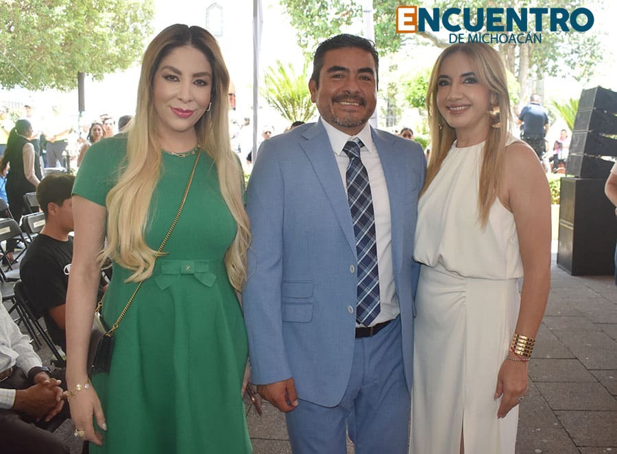 El alcalde Janitzio Zavala Vega estuvo acompañado en la ceremonia del Primer Informe de Gobierno por la senadora Araceli Saucedo y la diputada local Belinda Hurtado, además de Lenin López, titular del Ijumich y representante del gobernador del estado Alfredo Ramírez Bedolla.