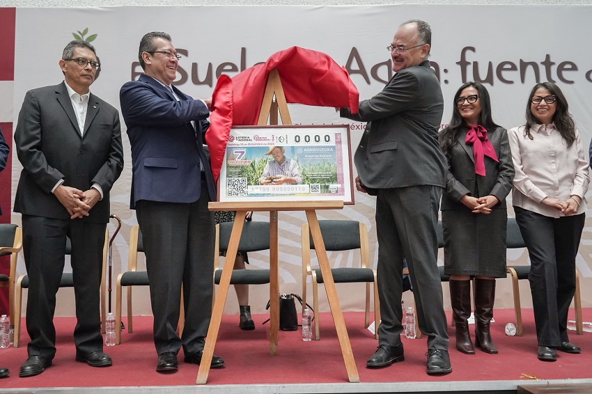 Tras la develación de un billete de la Lotería Nacional, en homenaje a este recurso, señaló que la Secretaría ha integrado acciones enfocadas en sensibilizar y concientizar a la sociedad sobre la importancia y relación del suelo y agua para lograr sistemas agroalimentarios sostenibles y resilientes.