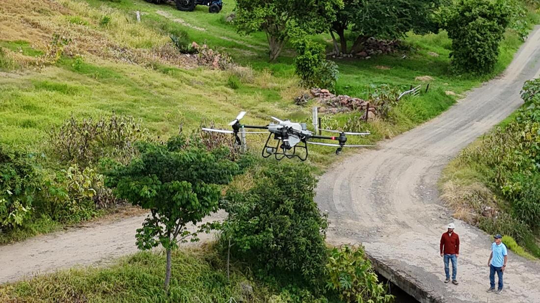 Como parte central de esta estrategia, se utiliza un dron DJI T-50 con capacidad de 40 litros, que permitirá esparcir de forma eficiente productos biológicos en caminos, cuerpos de agua y zonas aledañas a ríos, cuencas y canales, lugares donde se reproducen los huevecillos y larvas del mosquito.