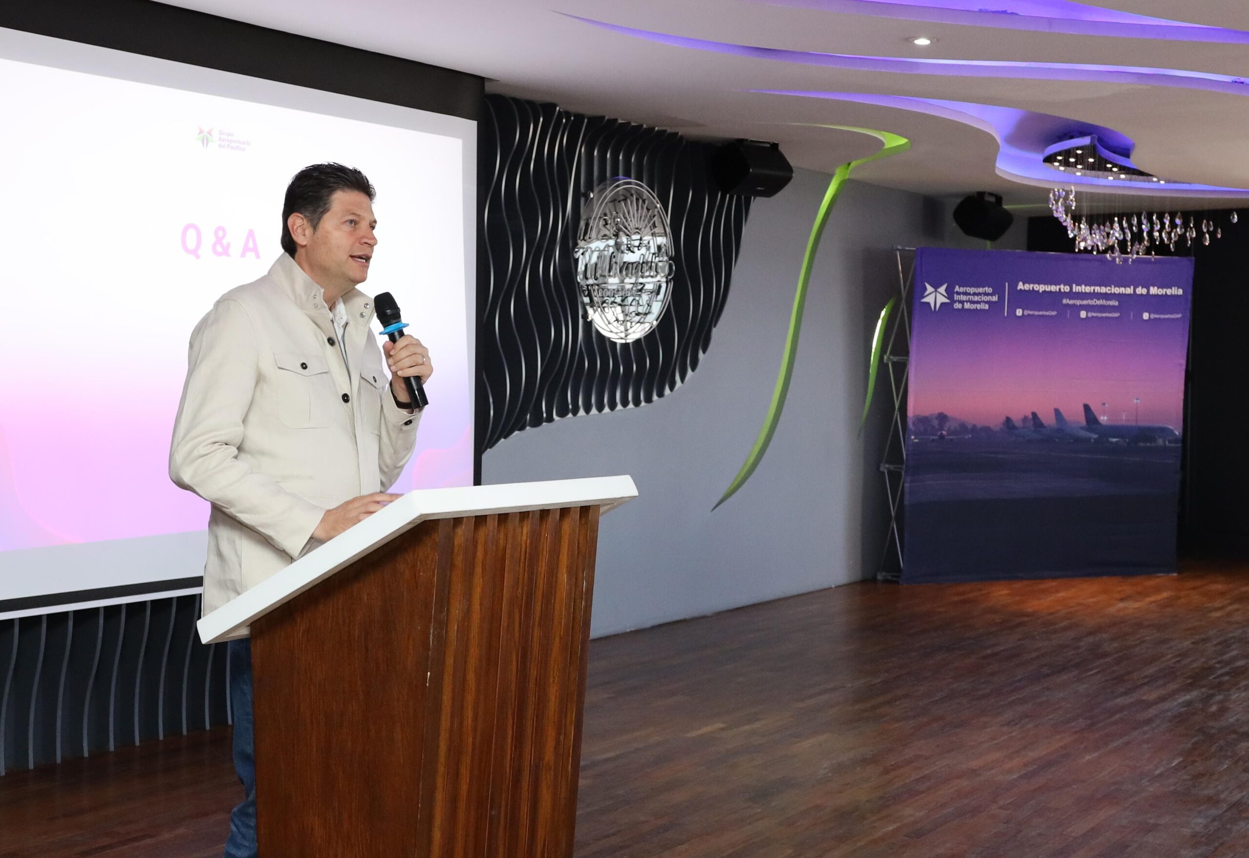 El presidente Alfonso Martínez Alcázar, manifestó el apoyo de su gobierno para que la conectividad y el turismo del municipio siga creciendo a través del Aeropuerto Internacional de Morelia, mismo que anunció una inversión de más de mil millones de pesos para seguir apostando a su modernización.