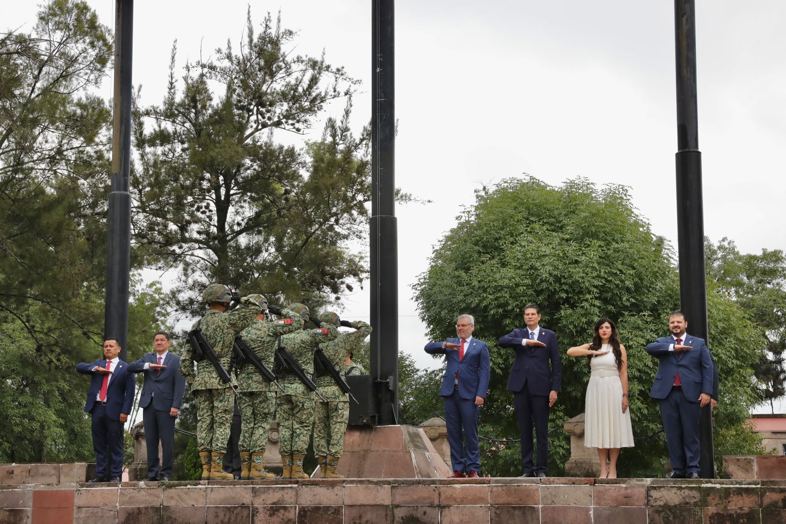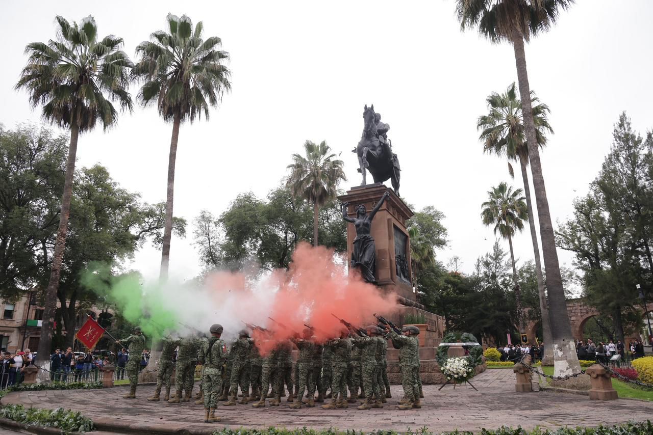 En la ceremonia, el mandatario y autoridades de los poderes Ejecutivo, Legislativo y Judicial, así como de autoridades estatales, municipales y militares, montaron guardia de honor en el monumento ecuestre, ubicado en la plaza jardín que lleva el nombre del llamado Siervo de la Nación.