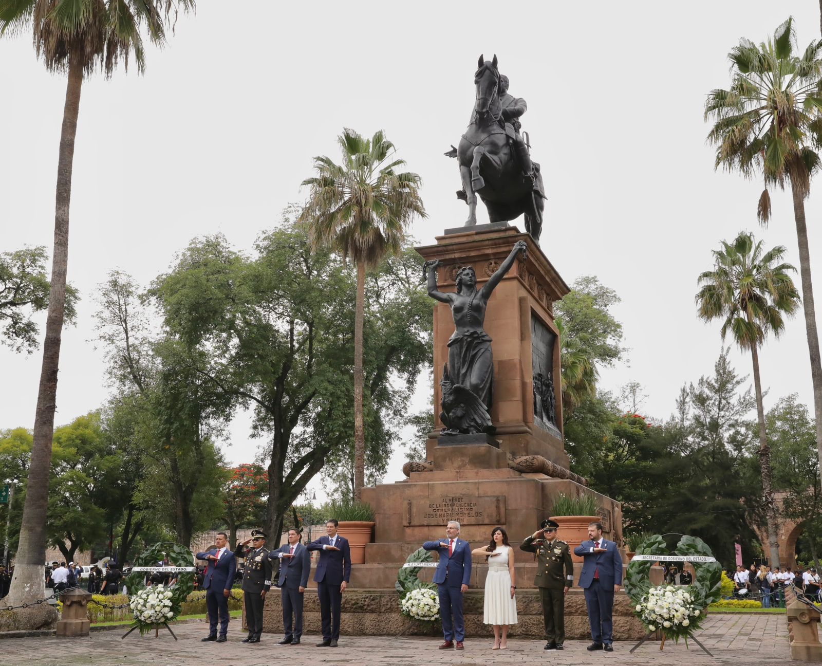 En la ceremonia, el mandatario y autoridades de los poderes Ejecutivo, Legislativo y Judicial, así como de autoridades estatales, municipales y militares, montaron guardia de honor en el monumento ecuestre, ubicado en la plaza jardín que lleva el nombre del llamado Siervo de la Nación.