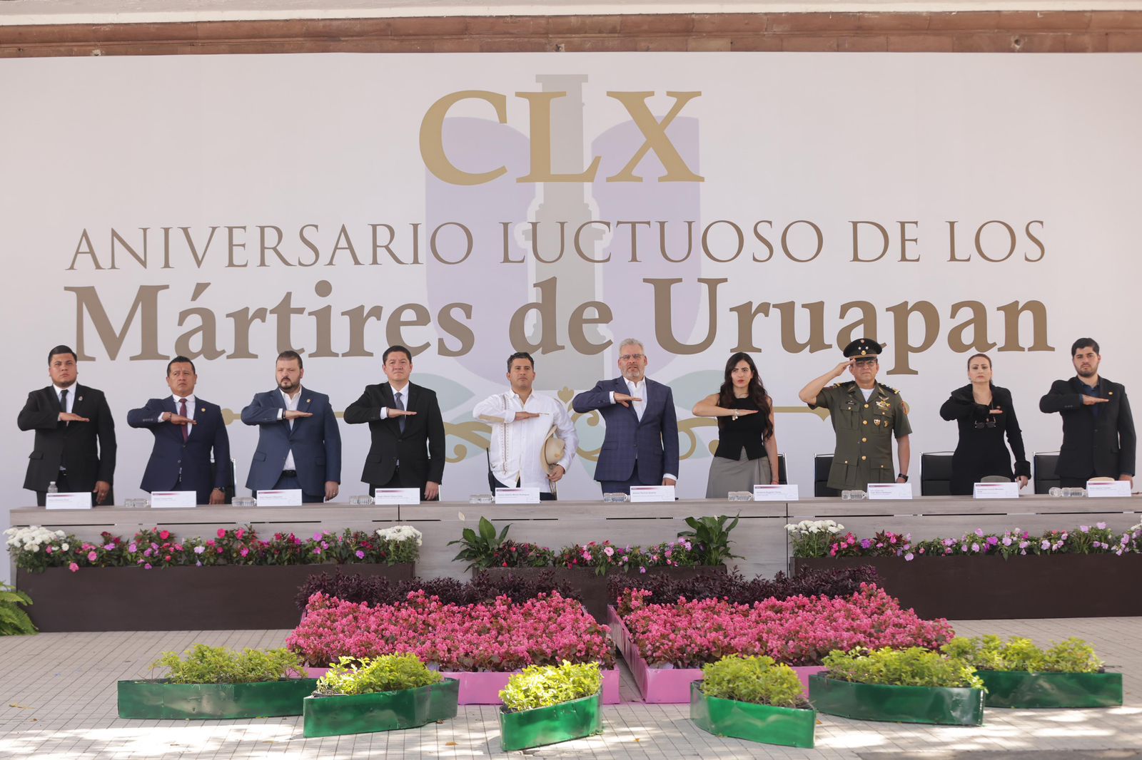 Participaron en la ceremonia el secretario de Gobierno, Raúl Zepeda; la diputada presidenta de la Mesa Directiva del Congreso local, Giulianna Bugarini; el magistrado presidente del Poder Judicial de Michoacán, Hugo Gama; el comandante de la 21 Zona Militar, Juan Bravo Velázquez, general de Brigada de Estado Mayor; el fiscal Carlos Torres Piña; y el alcalde de Uruapan, Carlos Manzo; entre otras autoridades estatales, municipales y legisladores.