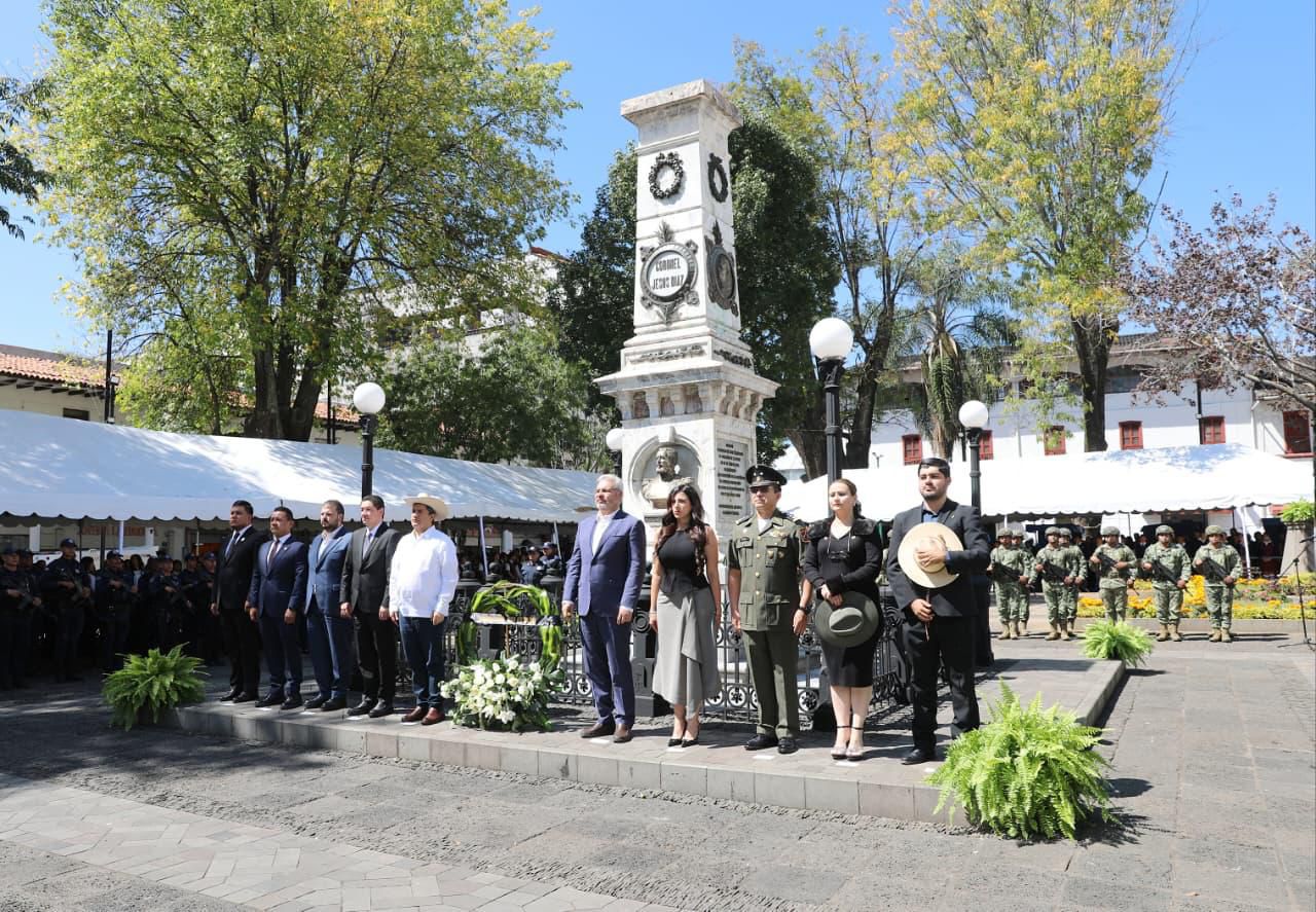 Uruapan, Michoacán5.- El gobernador Alfredo Ramírez Bedolla participó en la ceremonia por el 160 Aniversario Luctuoso de los Mártires de Uruapan, con la que se honra la memoria de un grupo de militares fusilados un 21 de octubre de 1865, durante la intervención francesa.