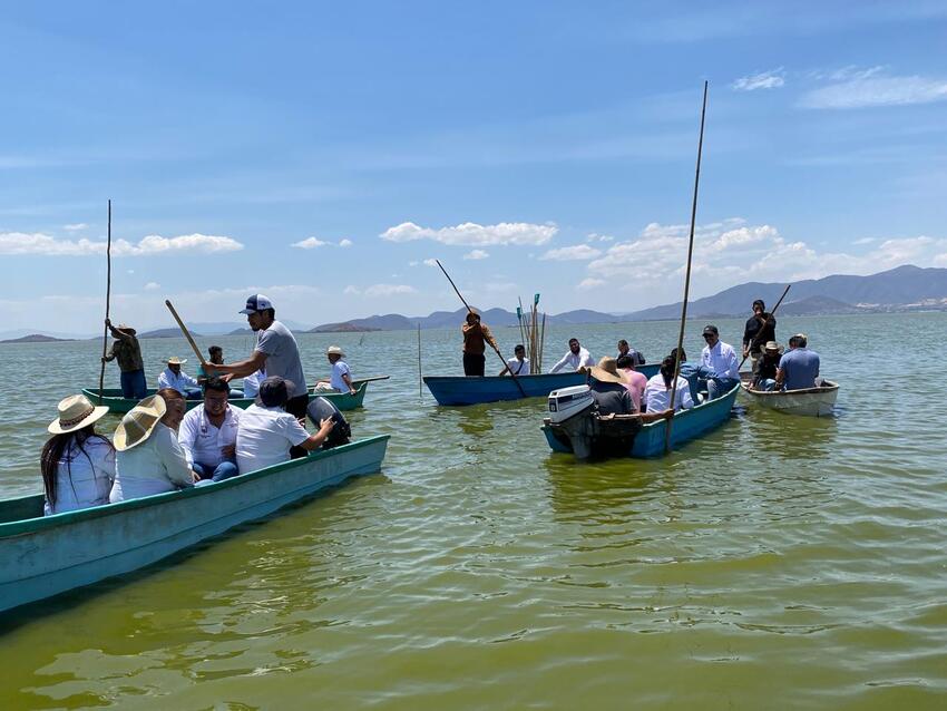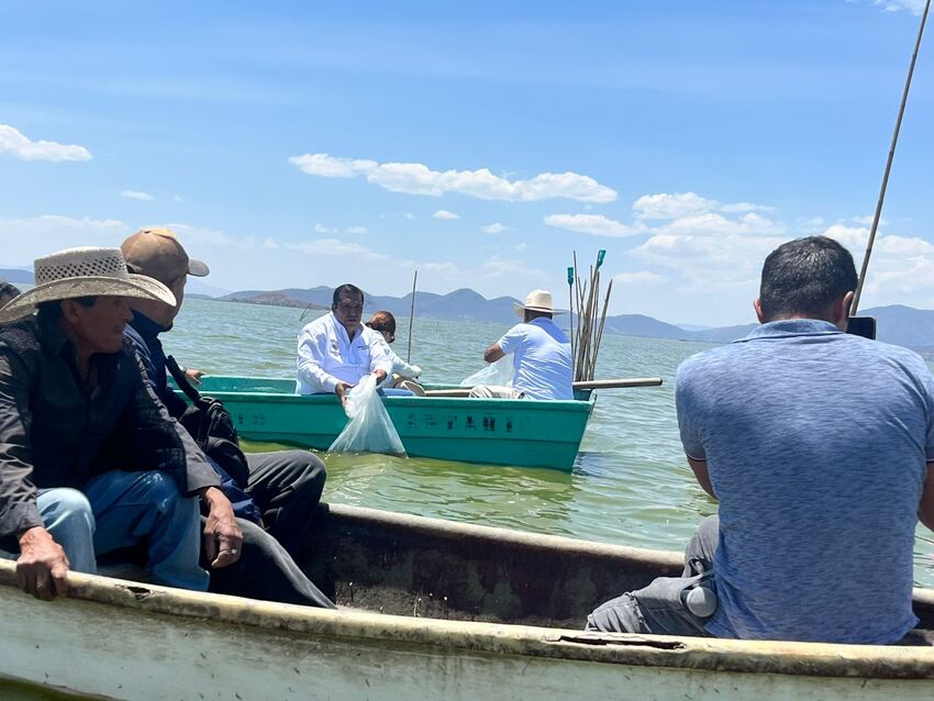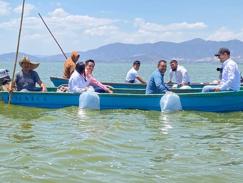 Aprovechando que hay nivel de agua y condiciones propicias para preservar la vida acuática en el lago de Cuitzeo, Jordan Reyes realizó esta semana una nueva siembra de peces acompañado de las cooperativas de San Bartolomé Coro.