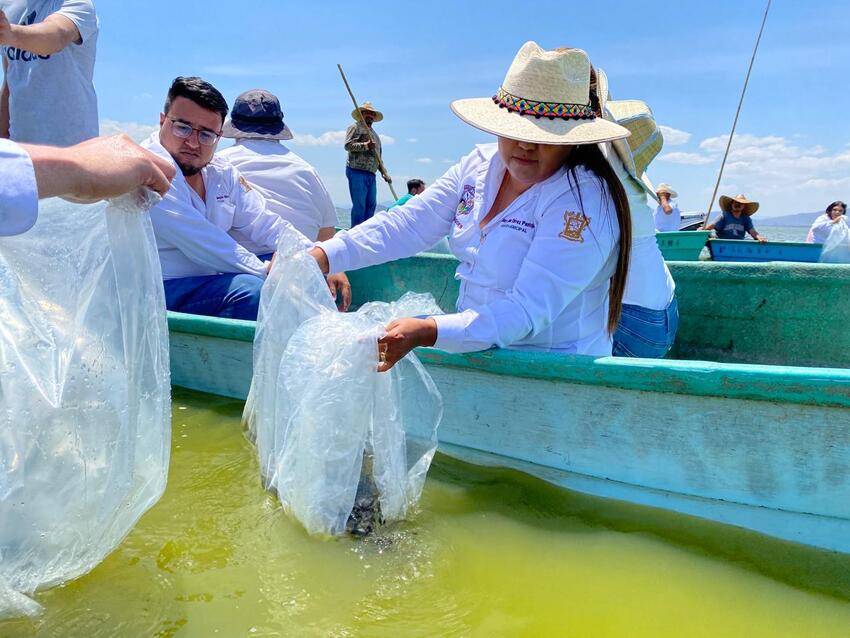 El funcionario recordó que en septiembre del año pasado se realizó una primera siembra de 200 mil alevines, que se suman a los 30 mil de esta semana en San Bartolomé Coro.