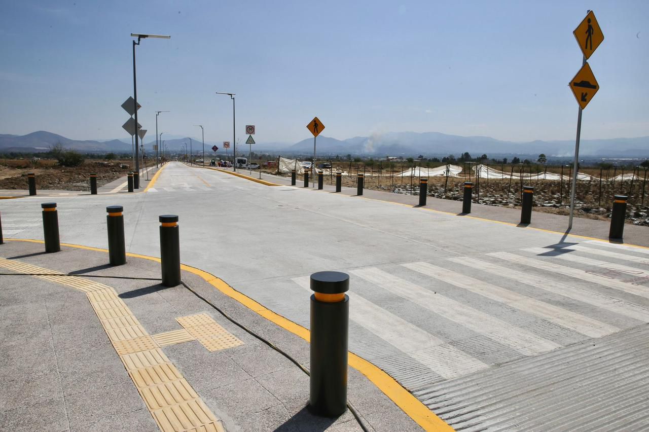 Resaltó que se invirtieron 44.9 millones de pesos en esta vialidad de 2.2 kilómetros de longitud construida con concreto hidráulico MR45; así como más de 7 mil metros cuadrados de banquetas con guarnición, colocación de drenaje, más de 90 luminarias solares y 110 bolardos para garantizar la seguridad vial de los y los estudiantes y de toda la comunidad.