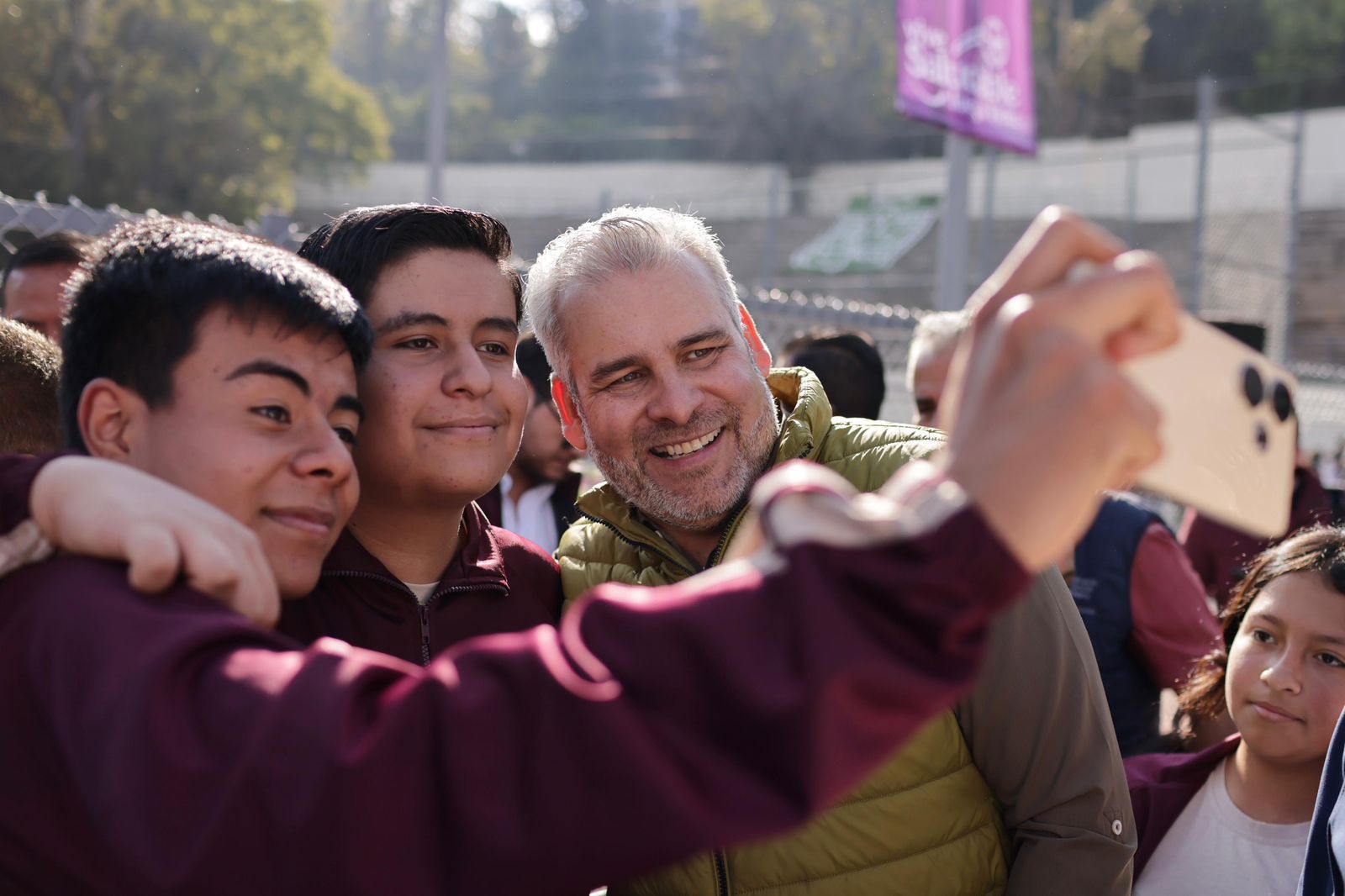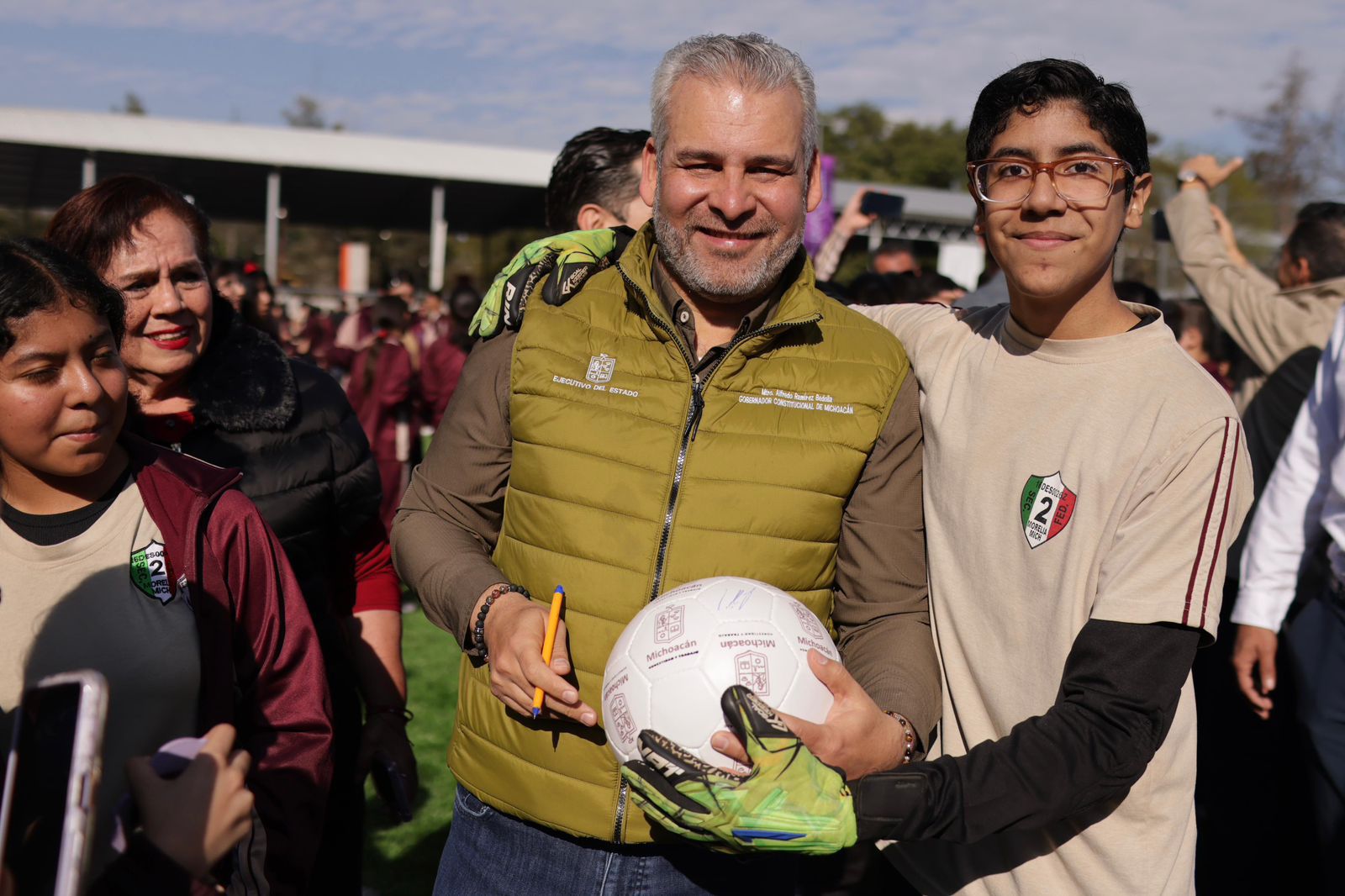 Para impactar de manera positiva en el desarrollo físico, social, emocional y académico de las y los estudiantes, el gobernador Alfredo Ramírez Bedolla dio la patada inaugural de dos canchas de fútbol 7 en la Escuela Secundaria Federal No. 2 “Hermanos Flores Magón”.