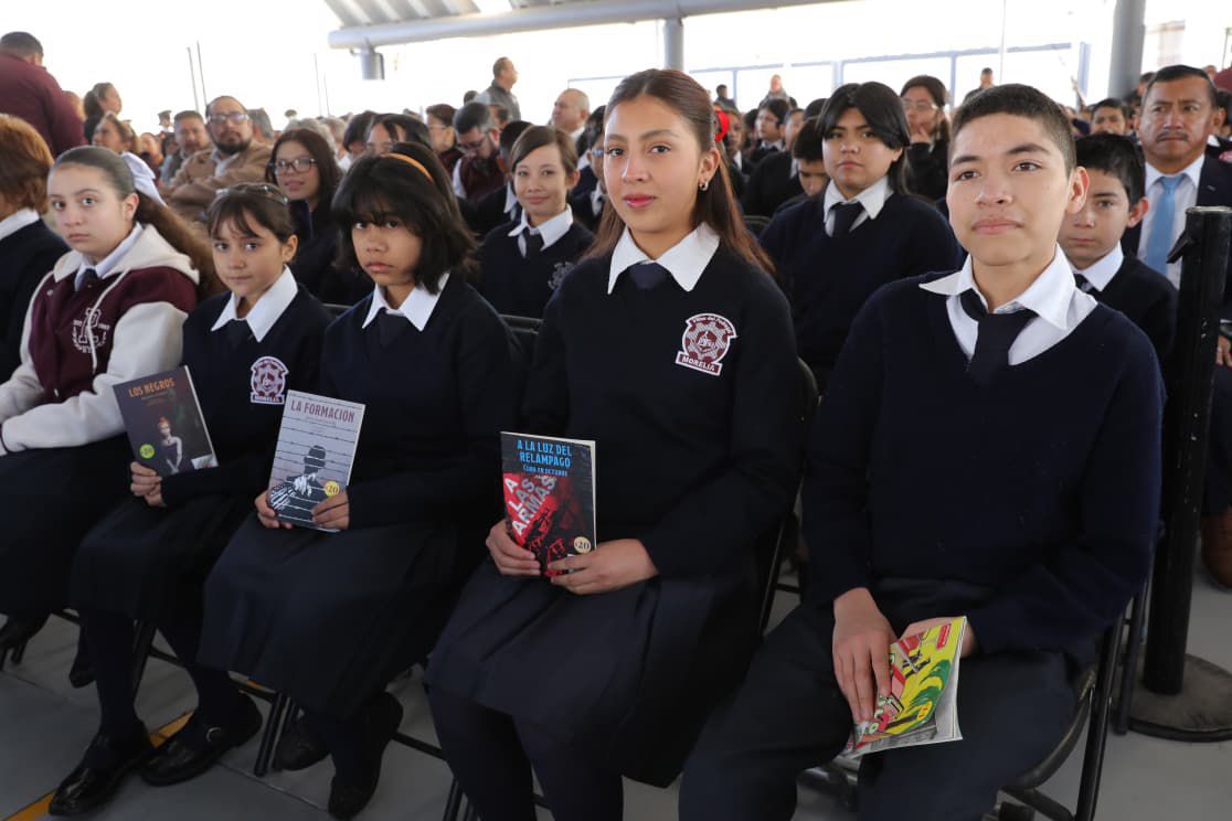 Destacó que todas las alumnas y los alumnos de esta secundaria y la entidad recibirán la beca Rita Cetina, un apoyo para la educación que impulsa la presidenta Claudia Sheinbaum Pardo, lo cual contribuye para que los estudiantes no abandonen sus estudios.