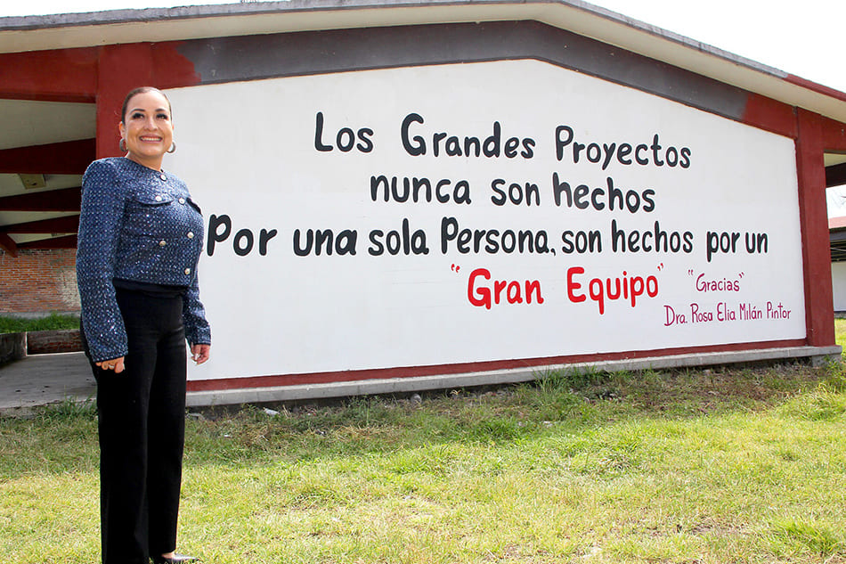 “Este importante proyecto de fortalecer la infraestructura educativa, también permite impulsar la práctica del deporte entre los jóvenes de nuestra comunidad”, destacó la Dra. Rosa Elia Milán Pintor, alcaldesa del Pueblo Mágico.