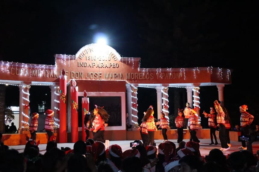 Con mucha ilusión y una gran alegría de los niños y niñas de Indaparapeo ante la llegada de la época más bonita del año, en la que el amor y la armonía se disfruta en cada familia, el alcalde Janitzio Zavala Vega y el párroco de Nuestra Señora de La Paz, Raymundo Hernández, realizaron el encendido del Árbol Monumental y la decoración navideña, para dar inicio a las Fiestas de Navidad y Fin de Año.
