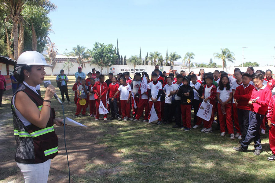 “Los niños y niñas deben enfocarse en estudiar, jugar, disfrutar, en soñar, crecer, en vivir cosas bonitas”, les dijo la presidenta municipal a los infantes que presenciaron el arranque de las obras en el Campo Deportivo La Ex-Hacienda.