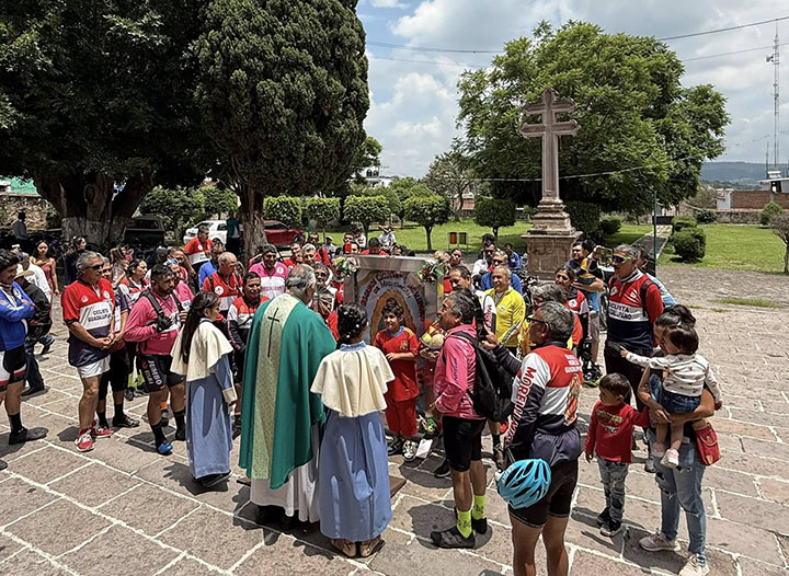 “El domingo pasado, en vísperas de comenzar nuestro novenario al Sr. de la Lámpara, recibimos con gusto a nuestros hermanos peregrinos ciclistas, provenientes de Tzintzuntzan, Francisco Villa, Tzintzimeo y Morelia, entre otros lugares. Por más de 40 años, con mucha fe y una resistencia inquebrantable estos hermanos siguen siendo un gran ejemplo de devoción y fortaleza. Que el Señor de la lámpara les permita regresar con bien a sus hogares”, expresó el párroco a los ciclistas peregrinos.