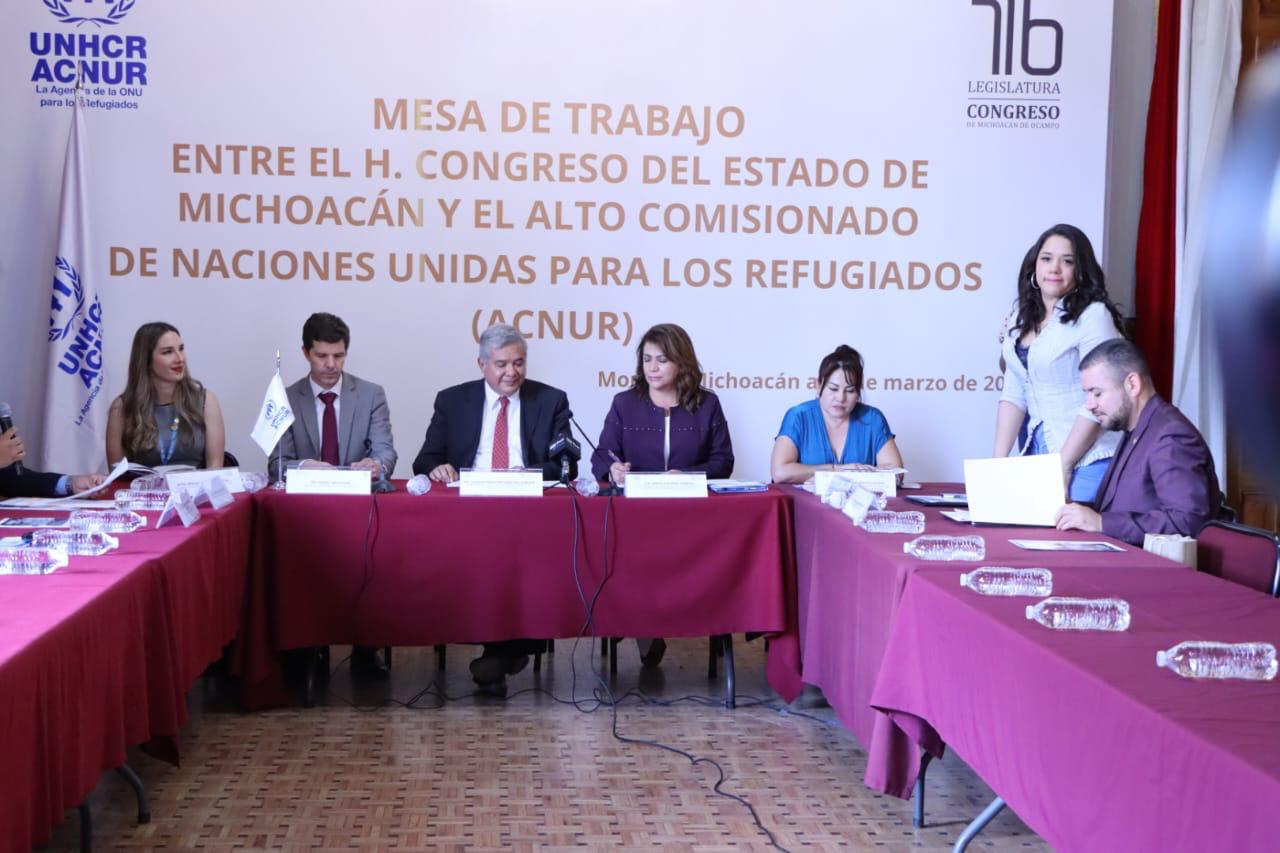 Con el objetivo de fortalecer los trabajos que garanticen la protección de los derechos humanos de las víctimas de desplazamiento forzado, la 76 Legislatura instaló una Mesa de trabajo entre el Congreso del Estado de Michoacán y el Alto Comisionado de Naciones Unidas para Refugiados (ACNUR).