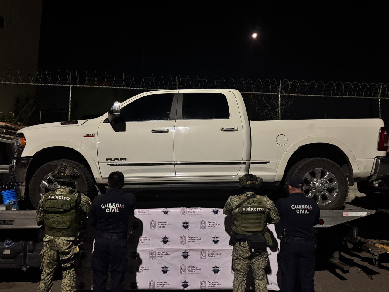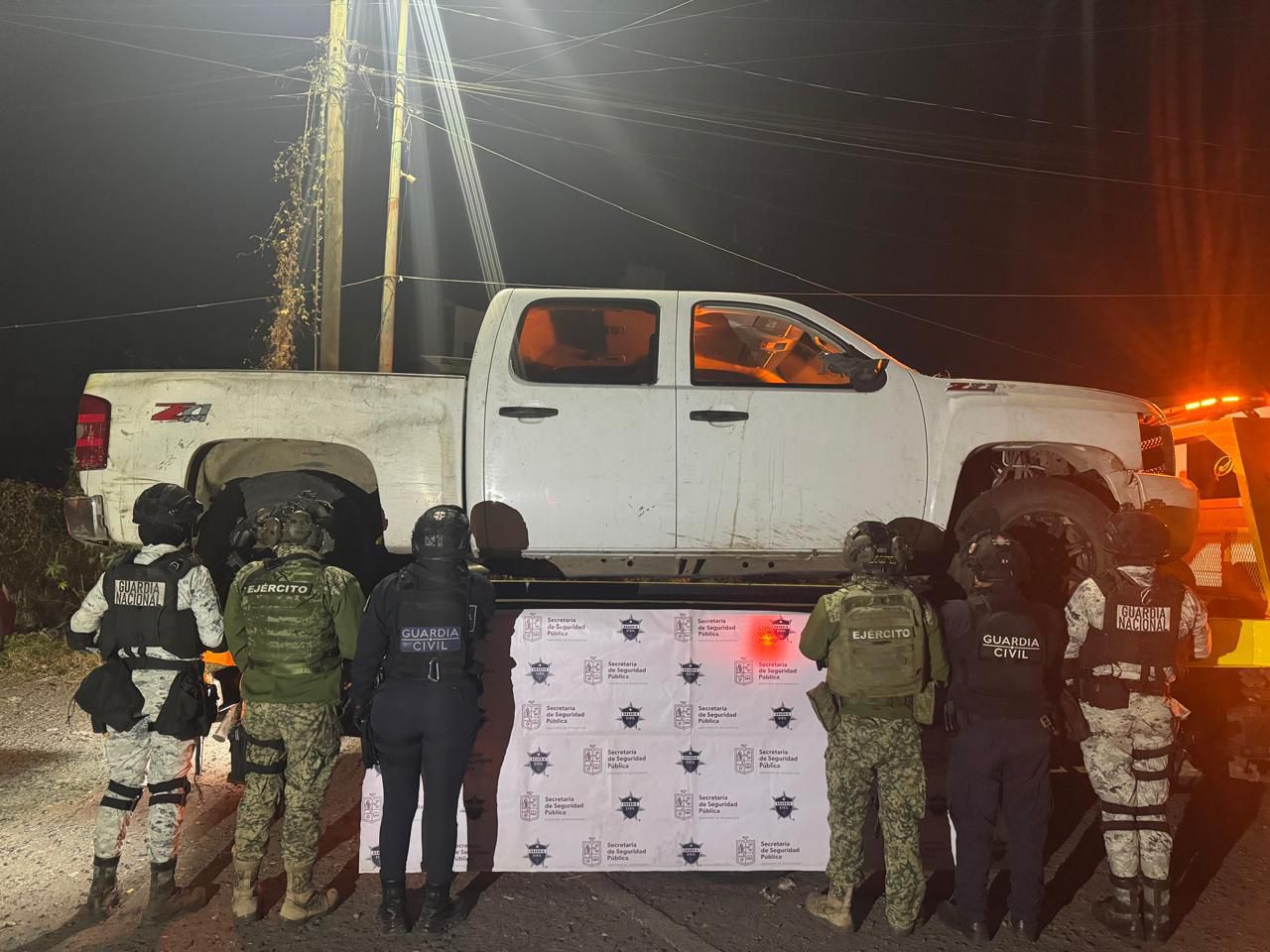 Los sujetos fueron asegurados en posesión de dos armas de fuego de calibres distintos (.9 mm y 5.7X28 mm), cargadores y cartuchos útiles. Además, les fueron incautados dos vehículos, uno marca RAM y otro Mercedes Benz, lo que refuerza la presencia de grupos foráneos en la dinámica criminal del municipio.