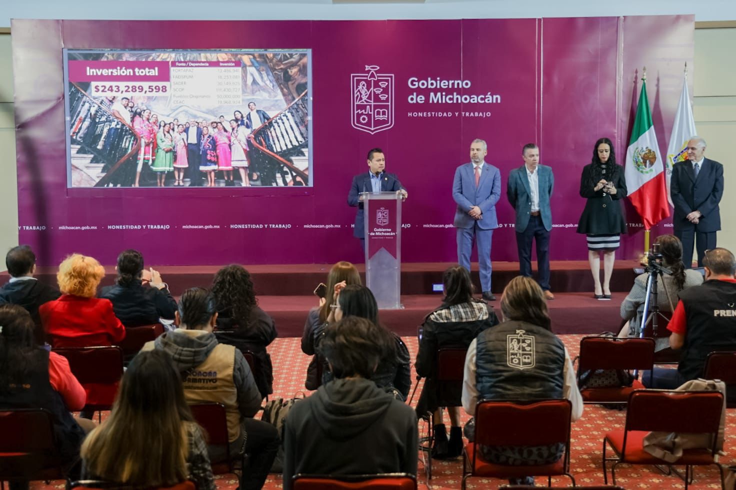 Ante representantes de medios de comunicación y del gobernador Alfredo Ramírez Bedolla, el secretario de Gobierno, Carlos Torres Piña, dio cuenta de algunas cifras representativas de los programas y acciones de atención a las comunidades indígenas.