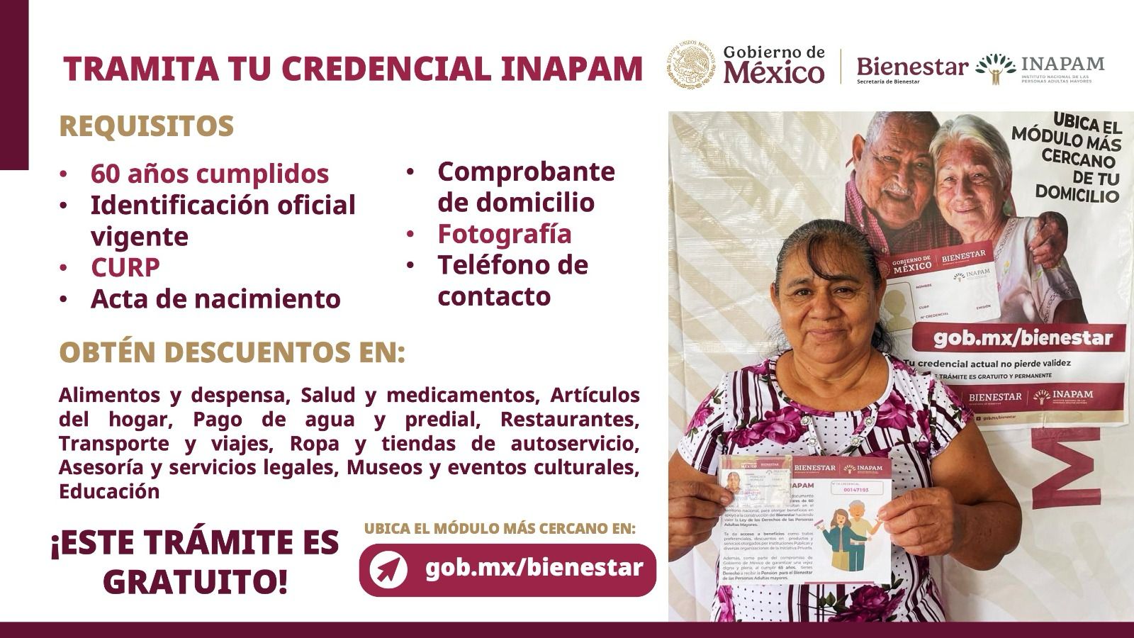 En la conferencia matutina: “Las mañaneras del pueblo”, que encabeza la Presidenta Claudia Sheinbaum Pardo, Montiel Reyes explicó que la tarjeta del Inapam, permite a las personas adultas mayores descuentos importantes en el pago de servicios, transporte, restaurantes, entrada a museos, eventos culturales, entre otros. El trámite es totalmente gratuito.