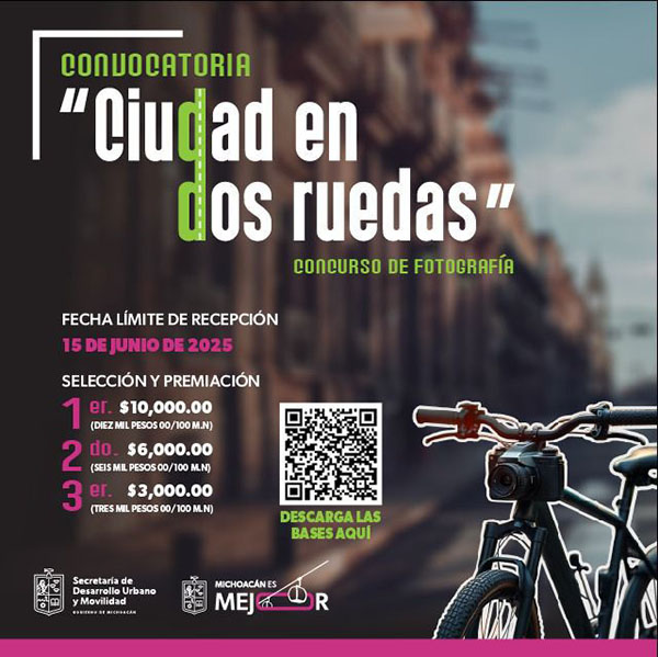 Podrán participar personas mayores de 16 años y podrán enviar hasta tres fotografías en formato digital (JPG o PNG), a color o blanco y negro, con una resolución mínima de 300 dpi. El envío debe realizarse al correo: direccionmovilidadmichoacan@gmail.com, con fecha límite al 15 de junio de 2025.