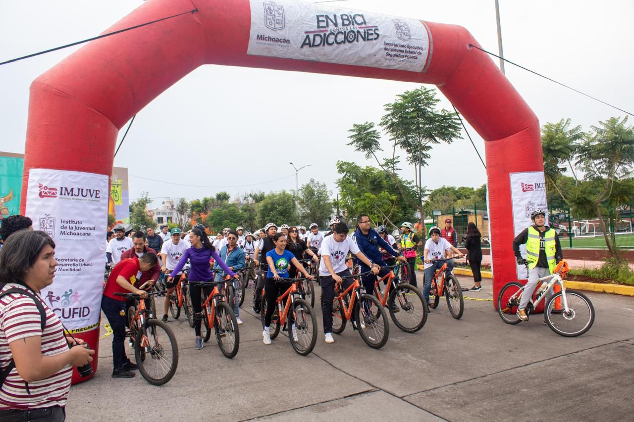 Este domingo, alrededor de 300 juventudes de Michoacán participaron en la rodada y carrera por la paz y contra las adicciones, organizada por el Instituto Mexicano de la Juventud (Imjuve) y el Instituto de la Juventud Michoacana (Ijumich), con la colaboración de la Secretaría de Desarrollo Urbano y Movilidad, el Secretariado Ejecutivo del Sistema Estatal de Seguridad Pública y la Comisión Estatal de Cultura Física y Deporte.